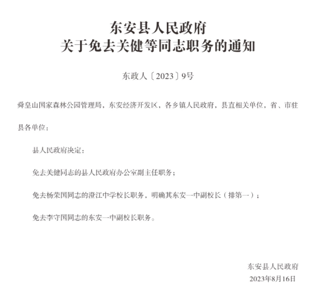 rayvet雷竞技关于免去关健等同志职务的通知