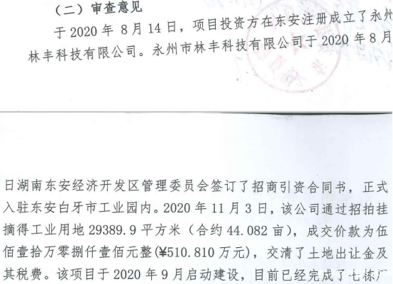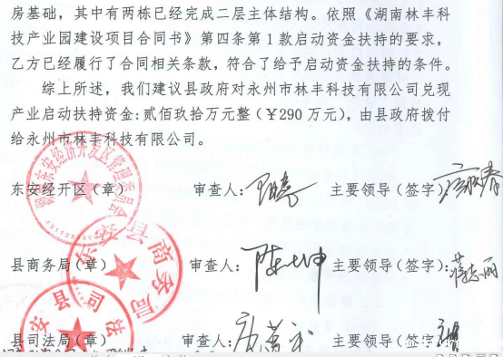丰林科技有限公司扶持资金拨付