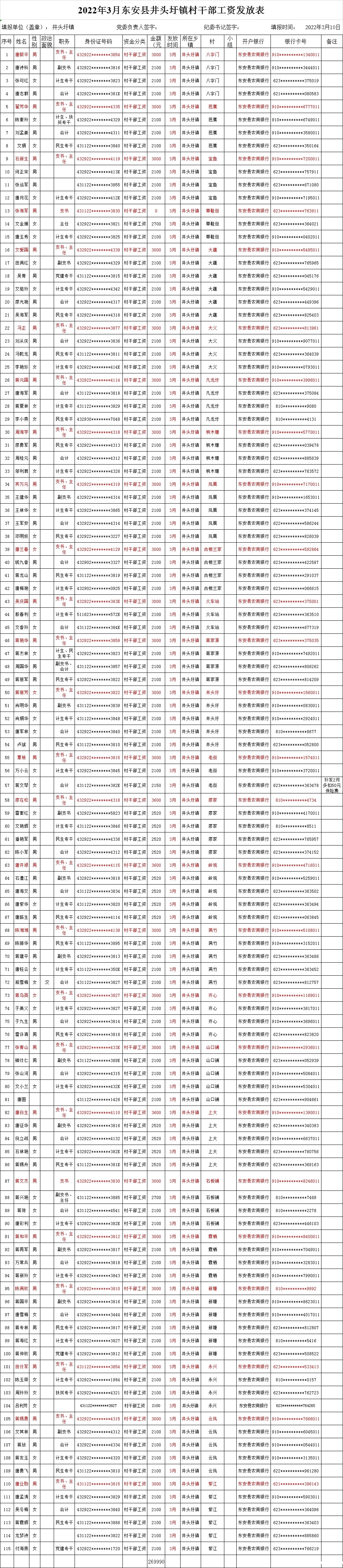 2022年ray雷竞技官网入口井头圩镇离任和在职村干部工资发放表(3月)