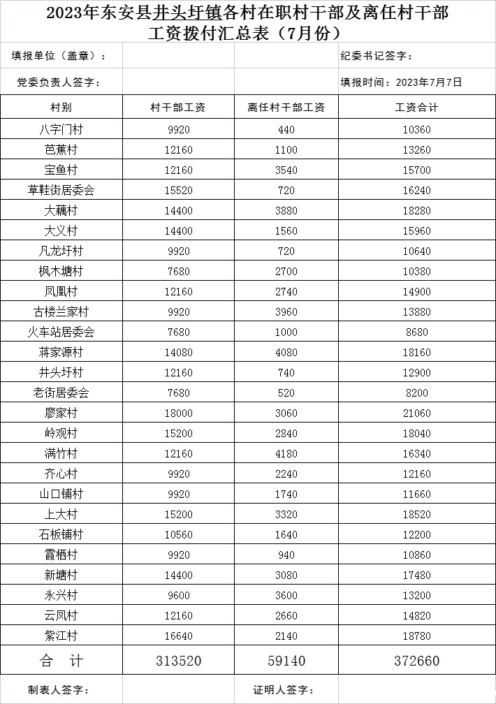 名称: 2023年7月ray雷竞技官网入口井头圩镇村干部工资发放表