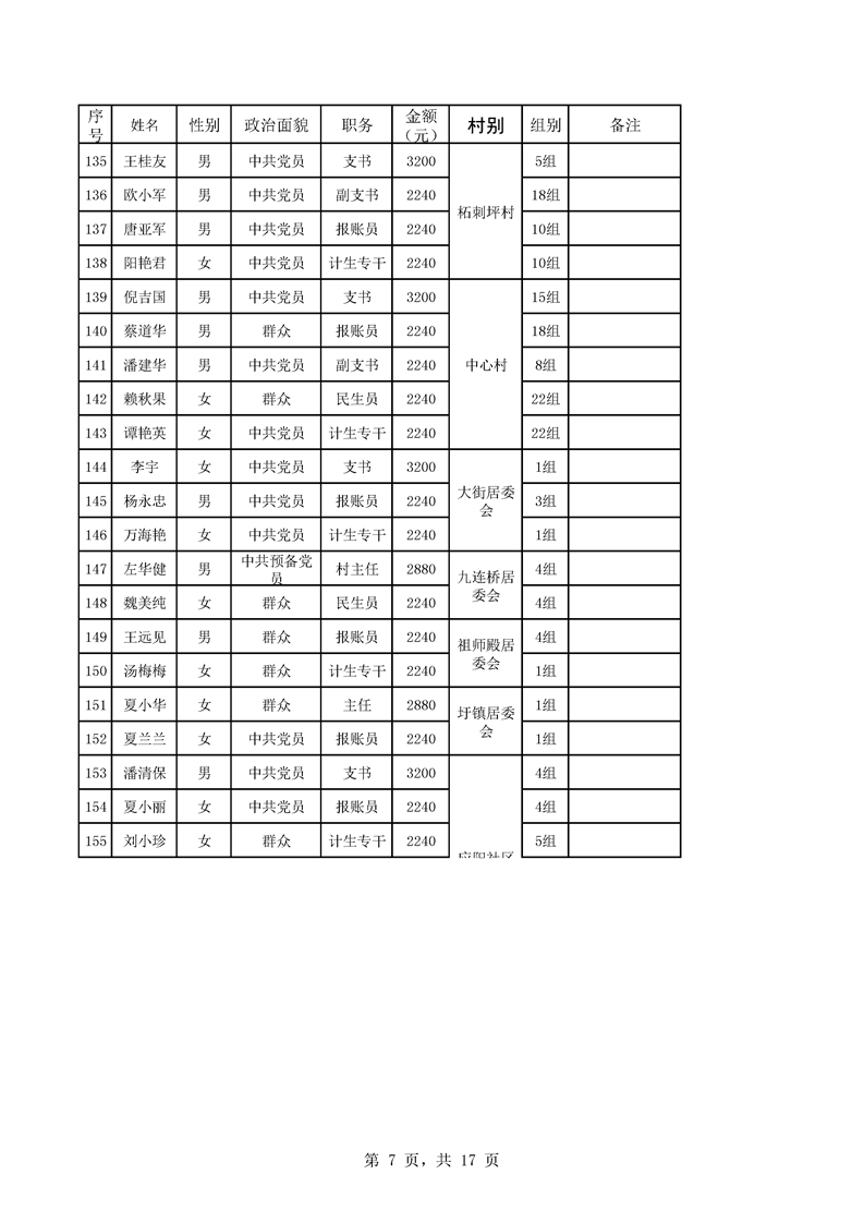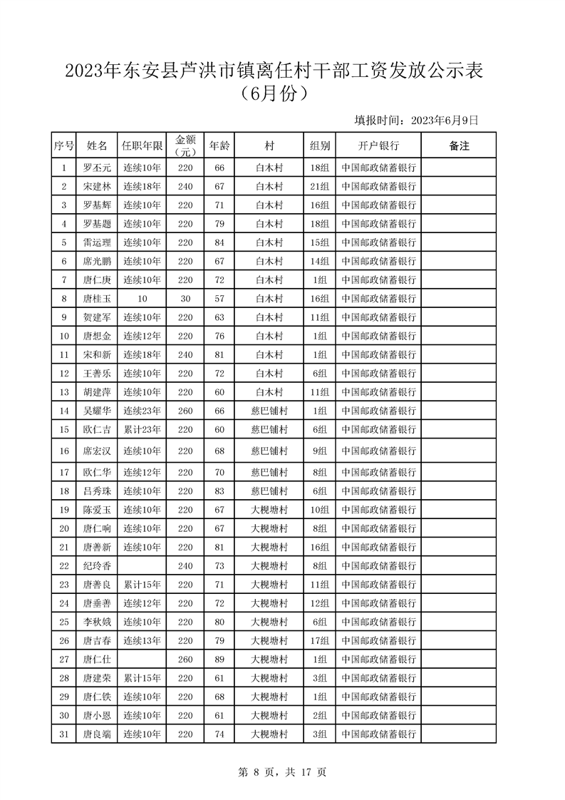 名称: 芦洪市镇2023年6月份村干部工资公示